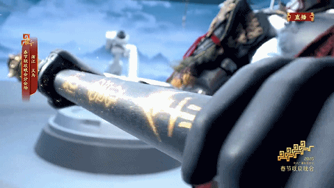 机器东说念主大圣从天而下,脚踏祥云声威统统,金箍棒耍起来声威滂湃。