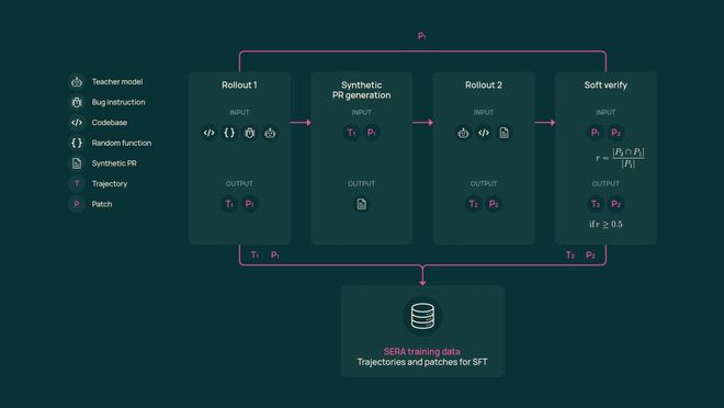 SERA的中枢冲破源于其在合成数据生成关节上的根人道创新。传统关节需要精准考证生成的代码补丁是否正确,这一过程计算老本欣忭,成为大边界欺诈的瓶颈。
