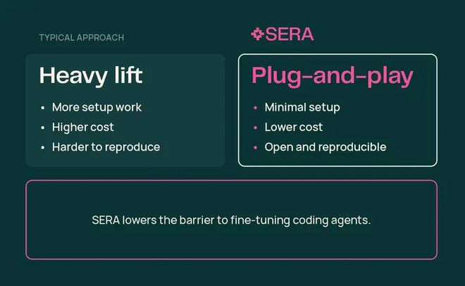 优化后的SERA在消费级硬件就不错启动,这关于想使用AI编程智能体的公司,意味着无须牵挂本人数据外泄,就不错用一个和更大参数模子性能周边,还适配本人编程范例的腹地智能体。这关于金融,医疗等海涵数据安全的行业尤为适用。