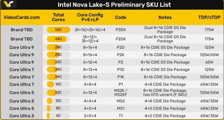 Nova Lake贬责器不错说是英特尔凹凸十分敬重的一代,比较较现时的酷睿贬责器,Nova Lake贬责器不错说进行了透顶的更新,现时网上也出现了多数对于Nova Lake贬责器的新料。有网站称我方独家获得了对于Nova Lake贬责器的诸多信息,包括规格以及不同定位的贬责器,另外还包括原生救济的内存频率以及功耗等标的。