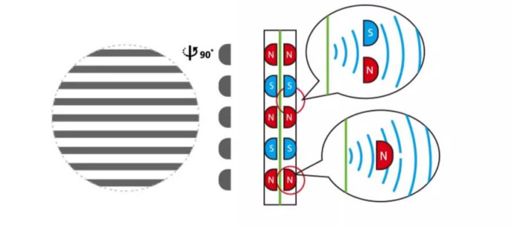 而平板振膜则足够不同,你可以将其看作是一层极薄的振膜,然后在振膜上铺满导电电路,再将振膜甩掉在两组(或一组)平行磁铁阵列中间,通过标准电流的大小驱动振膜的畅通。