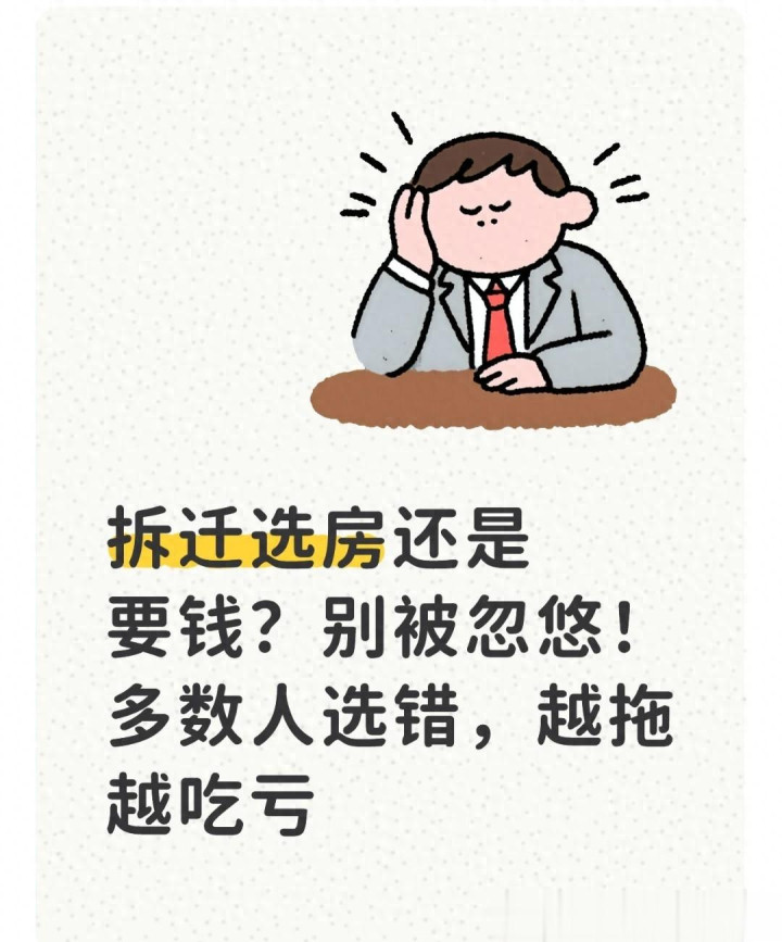 城市更新的措施不停加速,不少家庭迎来了房屋拆迁的机会。这本是改善居住要求、优化家庭金钱结构的功德,可横在面前"选房照旧要钱"的聘请题,却让无数家庭堕入纠结。有东谈主执着于现款在手的褂讪,有东谈主信赖房产才是长久的保险,还有东谈主在踯躅不雅望中错失良机。