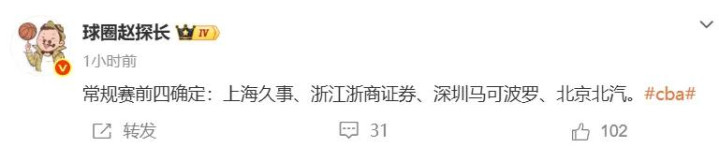 至极值得一提的是,也曾详情广东队无缘本赛季成例赛前四。前四球队分辨是上海队、广厦队、深圳队和北京队。