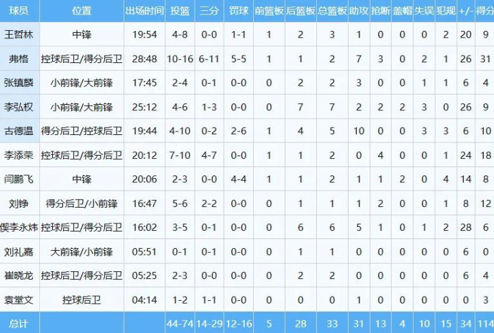 张镇麟濒临老东家进犯逸想不彊,动手4次中2球获得4分2板3助;曾为辽宁队夺得三冠且是24年FMVP的弗格则是涓滴不留东谈主情,投篮16中10狂轰31分外加7助3断,正负值+26。