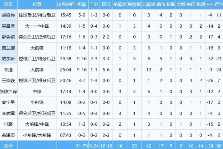 辽宁队数据如下: