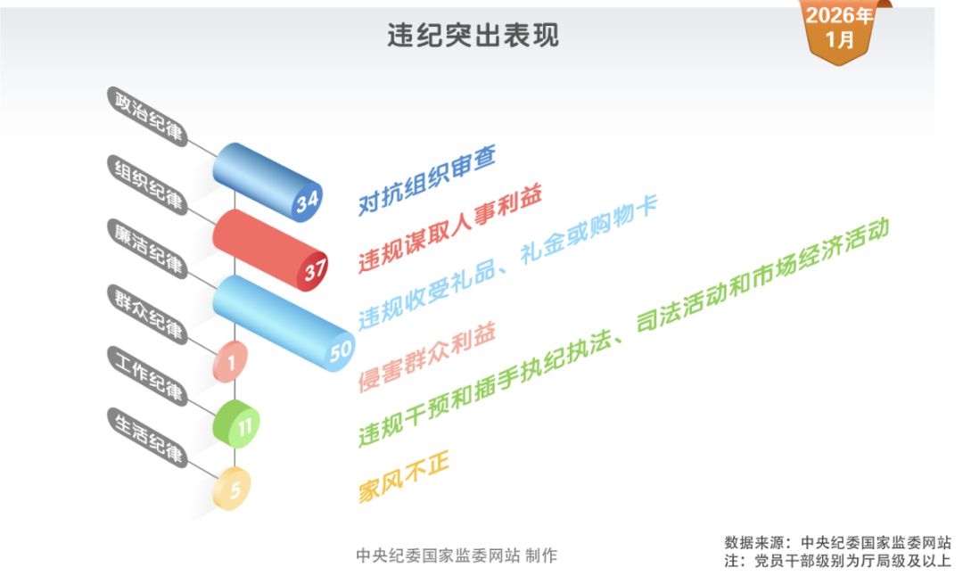 2月4日,中央纪委国家监委网站发布消息称,2026年1月,中央纪委国家监委网站共发布94条审查调查信息。其中,中管干部8人,中央一级党和国家机关、国企和金融单位厅局级干部15人,省管干部71人。
