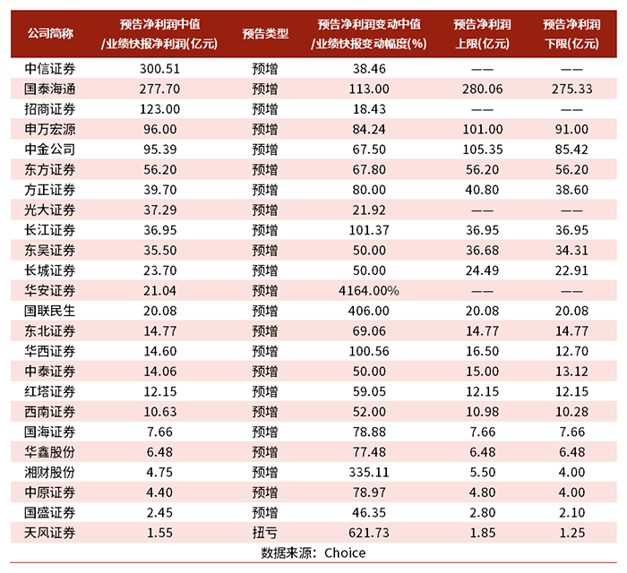根据Choice数据,截至2026年2月3日,A股和港股市场已有24家上市券商披露业绩预告或业绩快报,且全部实现净利润正增长。