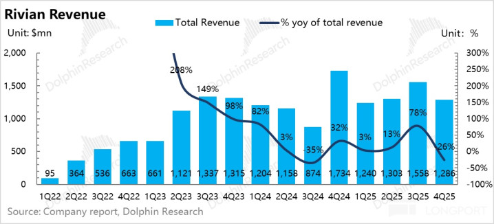 而顾虑事迹本人,由于 Rivian 的廉价 R2 终于要在 2026 年量产和推出,是以除事迹本人外,阛阓最情切的是 Rivian 给的 2026 年率领: