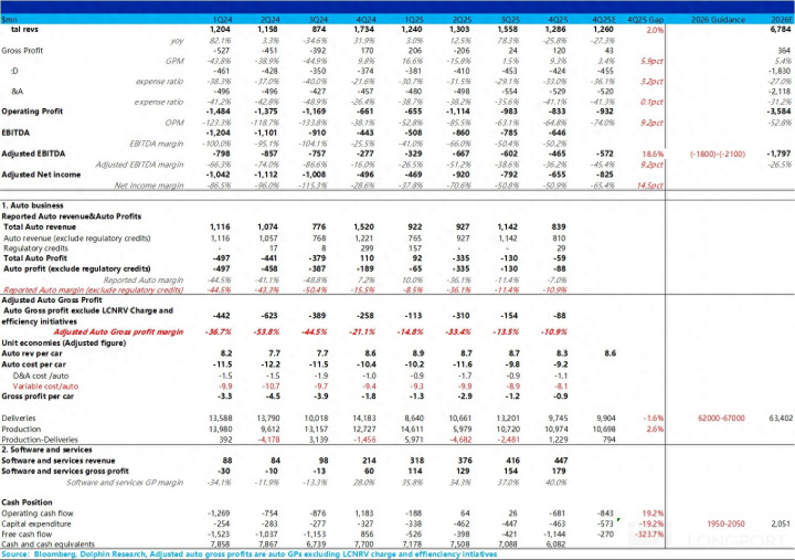 ② Adjusted EBITDA 率领-18 到-21 亿(2025 年-20.6 亿):这个率领要低于阛阓预期的-18 亿,主要原因在于 R2 全年大部分时候处于产能爬坡期,一样智驾研发参预加大,导致销量增长对利润的改善幅度被摊薄。