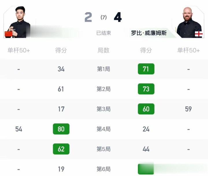 最差发达:斯佳辉手感全无2:4不敌罗比·威廉姆斯,雷佩凡景色低迷3:4被埃默里逆转出局。前者贵为T0P16,后者乃是苏格兰公开赛冠军,本届赛事联袂“一轮游”,令东谈主失望。