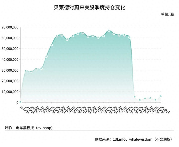 贝莱德初次买入蔚来好意思股始于2019年第一季度,其时仅抓有23.1万股。尔后抓仓限度逐季增多,巅峰时一度抓有逾6600万股。2024年第三季度大幅减仓后,贝莱德对蔚来好意思股的抓仓限度从千万股级别降至百万股级别。