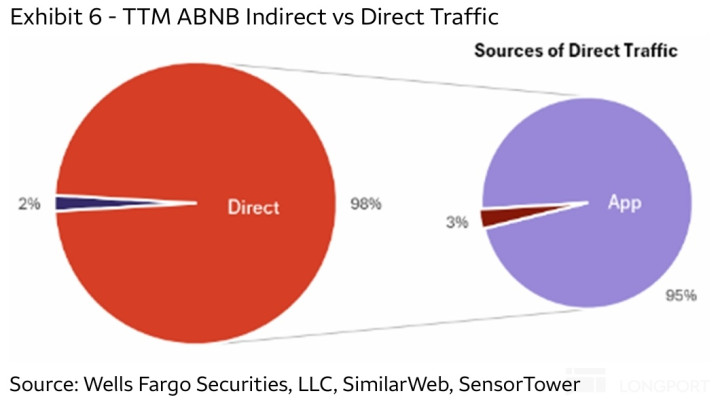 不外,相对同业,由于 Airbnb 品牌即品类的心智,绝大部分用户都是来自解放渠说念,不依赖外部搜索或外交媒体,因此表面上对外部 AI 进口的依赖较低,后续 AI Agent 成长起来后逻辑上收到的冲击也应当会更低些。