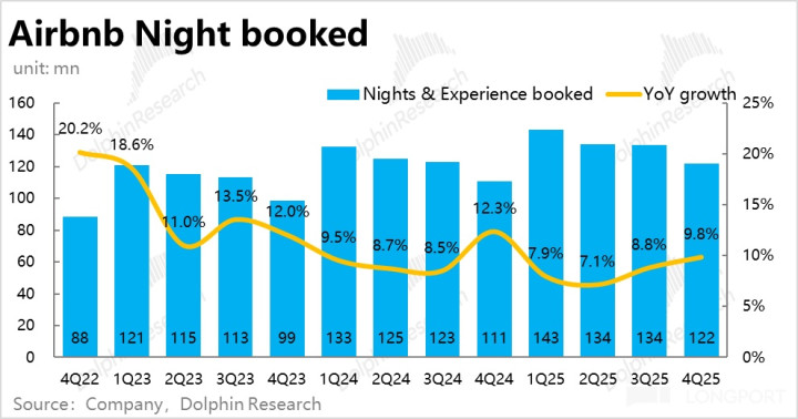 另类住宿龙头 Airbnb$爱彼迎(ABNB.US) ,今早公布了 2025 财年 4 季度财报,全体来看,公司的功绩要比预期的更好,不同于此前设备的增长可能放缓,实践本季的预订额和收入增长全线加快,创 25 年新高。稍显不及是用度扩展的也很强横,利润率彰着下滑,增收不太增利。